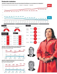La economista Lisbeth Cárdenas señala: “El aumento salarial para la Presidencia, en un momento donde la aprobación ciudadana de la Jefa de Estado apenas alcanza un 3%, según la encuesta realizada de Datum el año pasado en junio pasado, es sumamente preocupante. Este es, de hecho, el nivel de aprobación más bajo registrado para un presidente peruano desde 1980”.