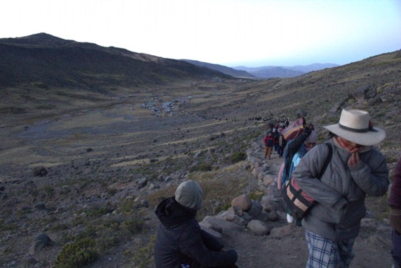A las seis de la mañana llegamos a la base. El frío te recibía como un golpe seco en los pulmones. Algunos encendían cigarros, otros bebían pisco, pero no sin antes derramar unas gotas a la tierra. El camino comenzaba: una cuesta empinada, interminable. Madres con niños de la mano, pequeños envueltos en alforjas, ancianos de pasos cansados pero tercos. Yo, citadino, jadeaba con cada respiro.