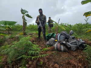 Octubre del 2024, la selva aún estaba húmeda cuando Jeison y su patrulla fueron insertados en el centro poblado de Virgen Jasa. La misión era clara: Ubicar dos laboratorios clandestinos de clorhidrato de cocaína. No había carreteras ni mapas detallados, solo coordenadas y una orden. “Nos insertaron a las once de la noche —recuerda—, caminamos toda la madrugada, casi todo era río.”