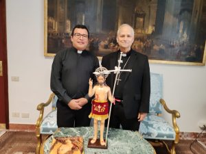 Sí, el sacerdote Edgar Rimaykuna Inga, que es un sacerdote, de la Victoria, pertenece a la parroquia San José Obrero. Desde que fue obispo aquí en Chiclayo ha sido su secretario, y después ahora, siendo Papa, continúa él de secretario.