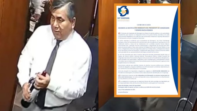 En serios problemas. Sindicato exige destitución del presidente Omar Chambergo tras revelarse celebración con licor en oficinas del organismo regulador. La Contraloría ya inició una investigación preliminar. Fuente: Infobae.
