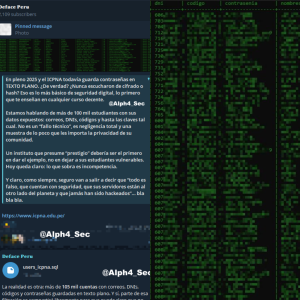 Vulnerables. Agrupación de hackers denuncia la “poca importancia” que toma el ICPNA en temas de privacidad. Collage: Alph4_Sec en “X”