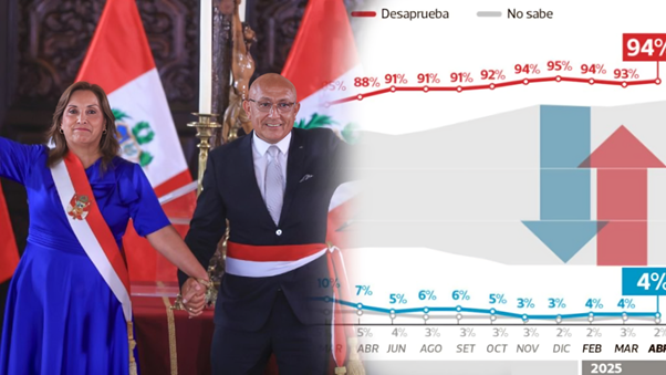 La encuesta muestra que la desaprobación hacia la mandataria llega al 94 %, con niveles aún más altos en regiones del norte y centro, donde el rechazo alcanza el 96 %. El estudio también revela que el respaldo popular en los sectores más vulnerables es apenas del 1 %, mientras que en Lima y Callao apenas llega al 3 %.